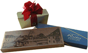Wir halten unsere Pralinen lose und in schönen Packungen mit Donaueschinger
